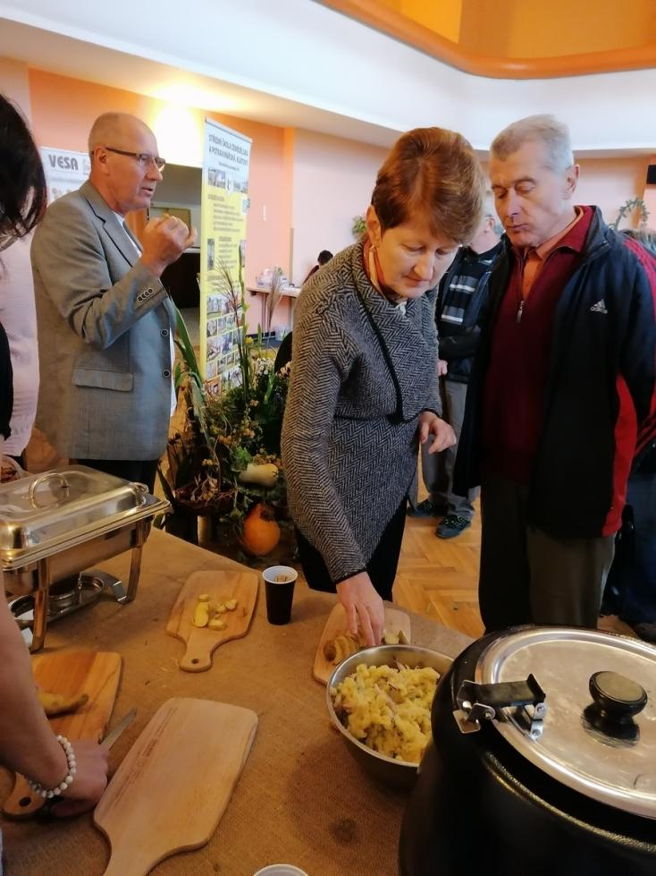 Sobotní den byl věnován problematice pěstování a zpracování brambor. Proto jsme pro návštěvníky ve spolupráci s Restaurací Na Zemědělce připravili ochutnávky různých bramborových jídel. Kromě tradičních bramboráků a bramborových placek mohli zájemci ochutnat také sladkou i slanou variantu bramborové buchty, bramborovou polévku nebo netradiční bavorský bramborový salát. V dopoledních hodinách proběhla přednáška Ing. Kopačky z šlechtitelské stanice Vesa Velhartice, po které následovala degustace různých odrůd brabmor. Zájemci tak mohli srovnávat odrůdy salátové s moučnými odrůdami vhodnými na lupínky nebo kaše.